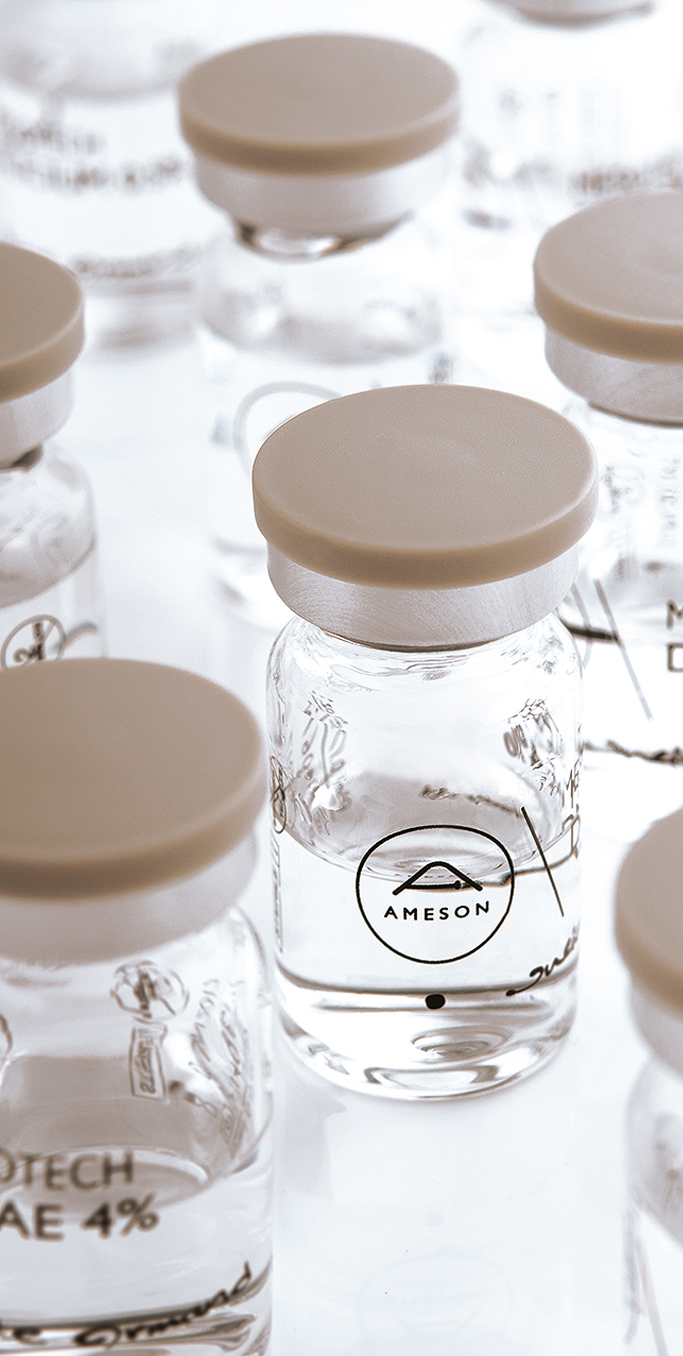 After 23 years of research, development and production of professional-quality cosmetics, Juliette Armand announces the AMESON Skin Medical Series, bringing all the benefits of science to medical aesthetic products. The name of the AMESON range, inspired by the Greek word AMESOS (‘immediately’), underlines the commitment to medical aesthetic skin care with IMMEDIATE results.